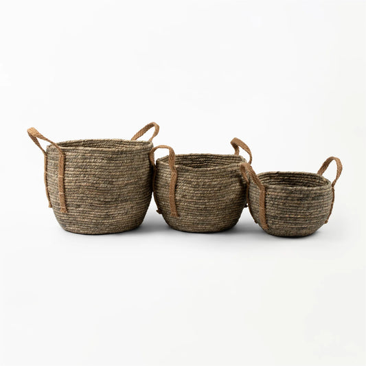 Natural Grass Basket with Woven Grass Handle |REVOLOGY