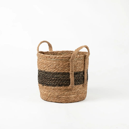 Natural and Black Stripe Basket with Hemp Handles | REVOLOGY