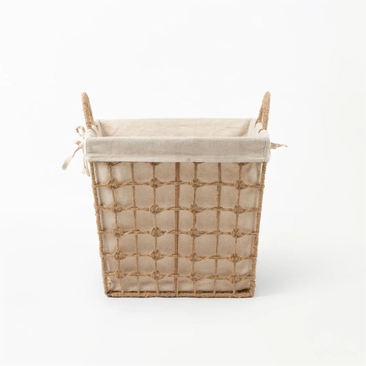 Square Hemp Tied Wire Basket with Hemp Fabric | REVOLOGY