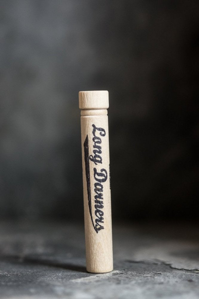A mixture of sizes in a turned wooden case. Fits in any bag or pocket.